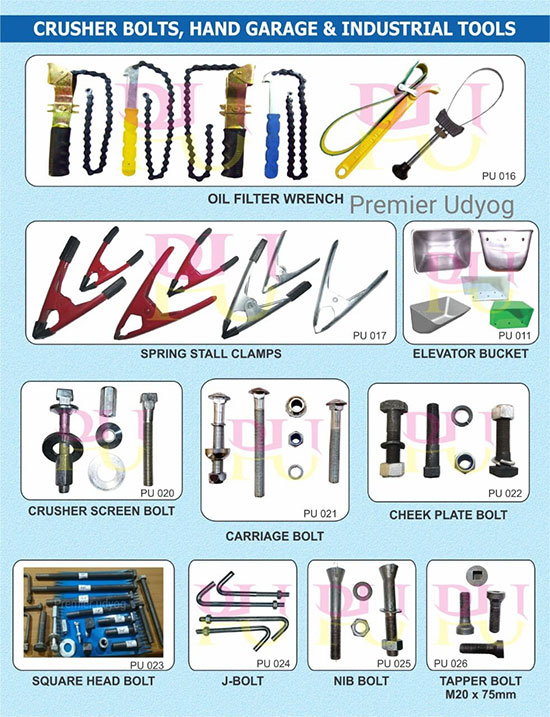 The wide array we are dealing in comprises Conveyor Elevetor Belt Fasteners, Elevator Bucket Bolts,Euro Spike Bolt, Oval Belt Fasteners, Stone Crusher Parts, Oil Filter Wrenches, Spring Stall Clamps, Chain Saw Machine Parts, Scaffolding Spares, Bolt Breakers, Gripwell Fasteners, Sheet Metal Press Components etc.